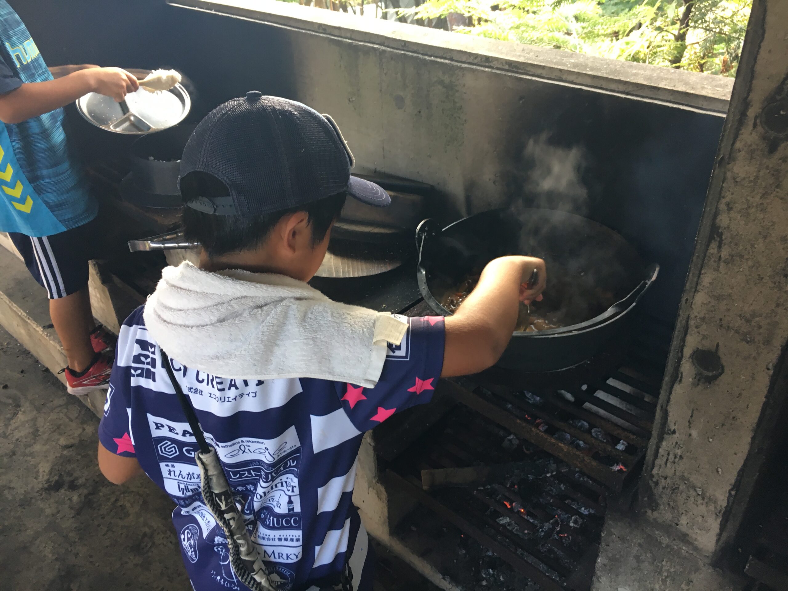 自然の家の人気施設のひとつがキャンプ場と野外炊事場です。テント設営や火おこし、飯ごう炊さんなど、アウトドアの基本を体験できる環境が整っています。